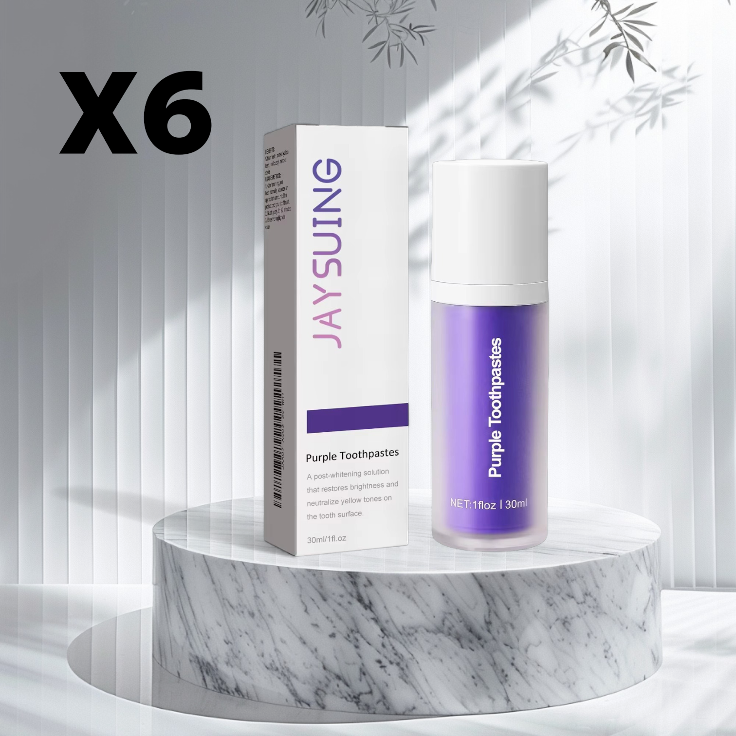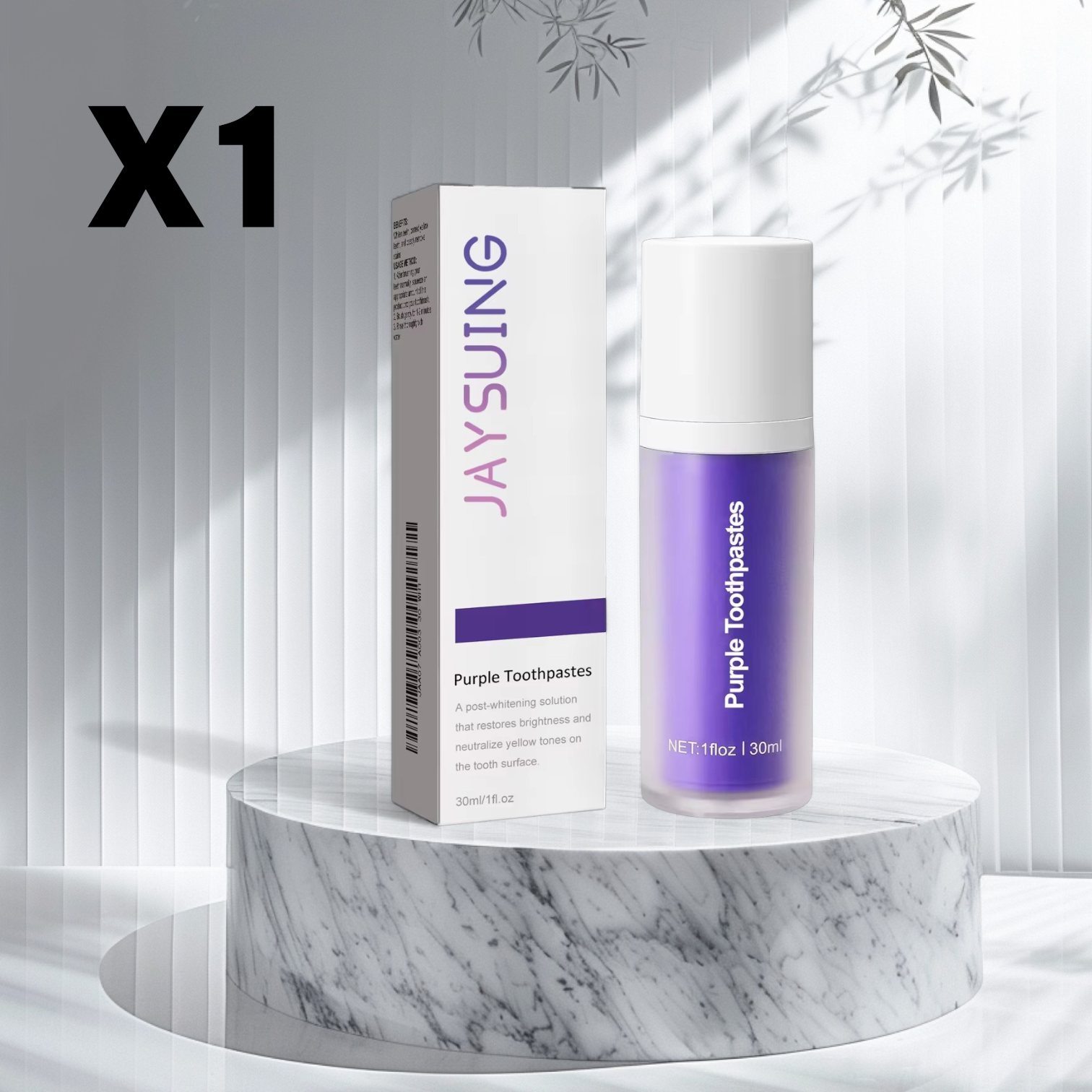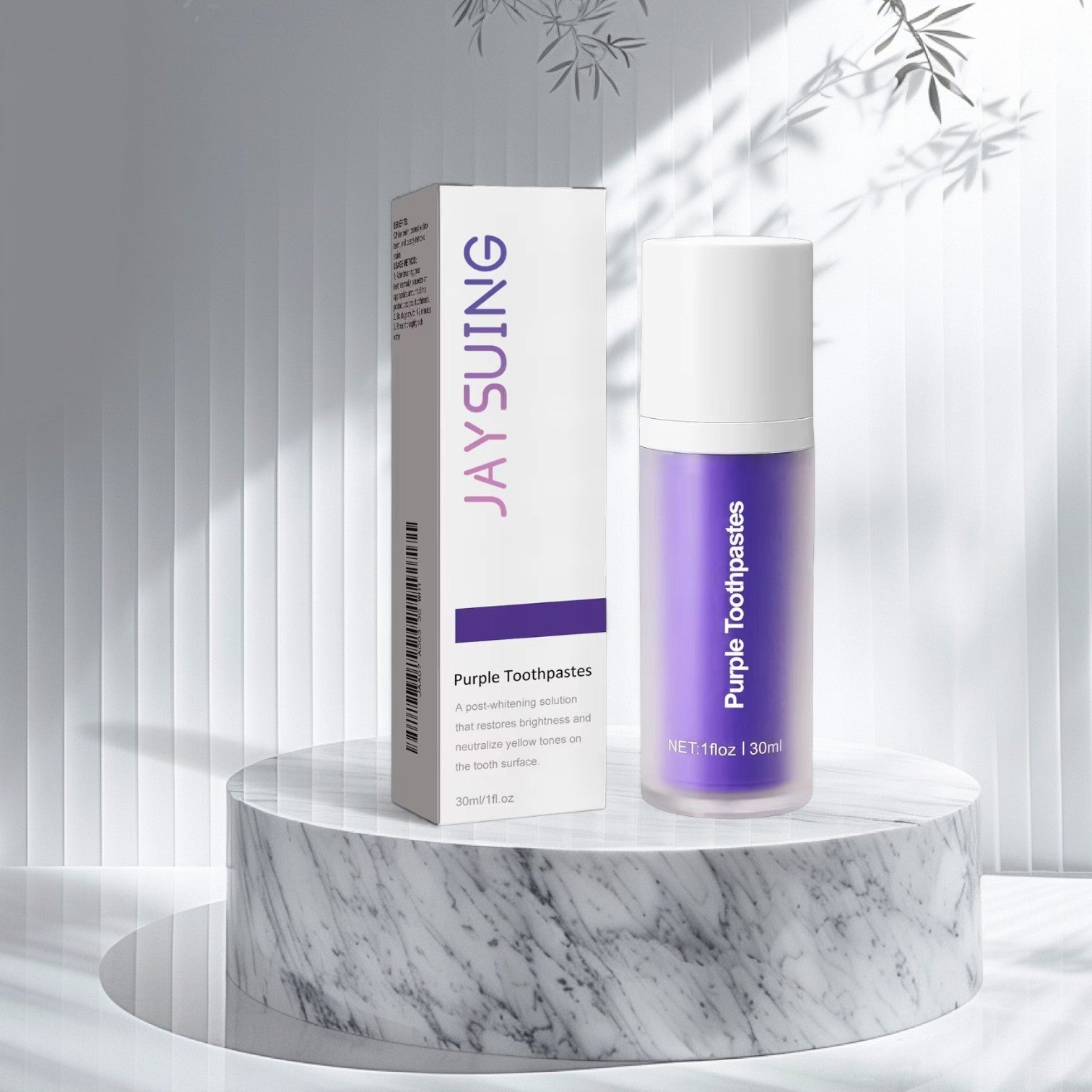 Le dentifrice JaySuing utilise une technologie de correction optique des couleurs : la teinte violette vise à neutraliser les tons jaunes des dents et donner l’impression d’un sourire plus blanc.